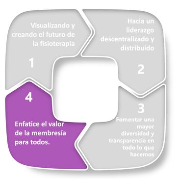 El propósito de World Physiotherapy es "Representar a la fisioterapia en todo el mundo, promoviendo nuestra profesión y abogando por todos, para mejorar la salud y el bienestar". Para lograr esto, World Physiotherapy ha operado bajo un modelo de gobierno que es una combinación de liderazgo y gestión centralizados y descentralizados. Por un lado, este modelo ha llevado a un crecimiento y expansión impresionantes de las actividades de valor agregado; por otro lado, la tecnología de comunicación avanzada ha facilitado enormemente y ha abierto nuevas oportunidades para los debates globales en tiempo real y la toma de decisiones colectiva. En mi opinión, las regiones, subgrupos y redes de World Physiotherapy son su 'ADN' colectivo, y es importante avanzar estratégicamente hacia el empoderamiento y permitir que las Organizaciones Miembros se conviertan en un lugar fuerte de actividad, control y, en última instancia, autodeterminación. Los economistas han afirmado a menudo: "Una marea creciente levanta todos los barcos", lo que significa que la mejora de cada individuo beneficia a toda la comunidad. Avanzar hacia un mayor empoderamiento e influencia dentro de cada una de nuestras Organizaciones Miembros actuales y futuras fortalecerá toda nuestra red.