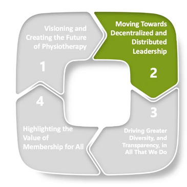 World Physiotherapy’s purpose is “To represent physiotherapy across the globe, advancing our profession and advocating for all, to improve health and wellness.” To achieve this, World Physiotherapy has operated under a governance model that is a blend of centralized and decentralized leadership and management. On the one hand, this mod